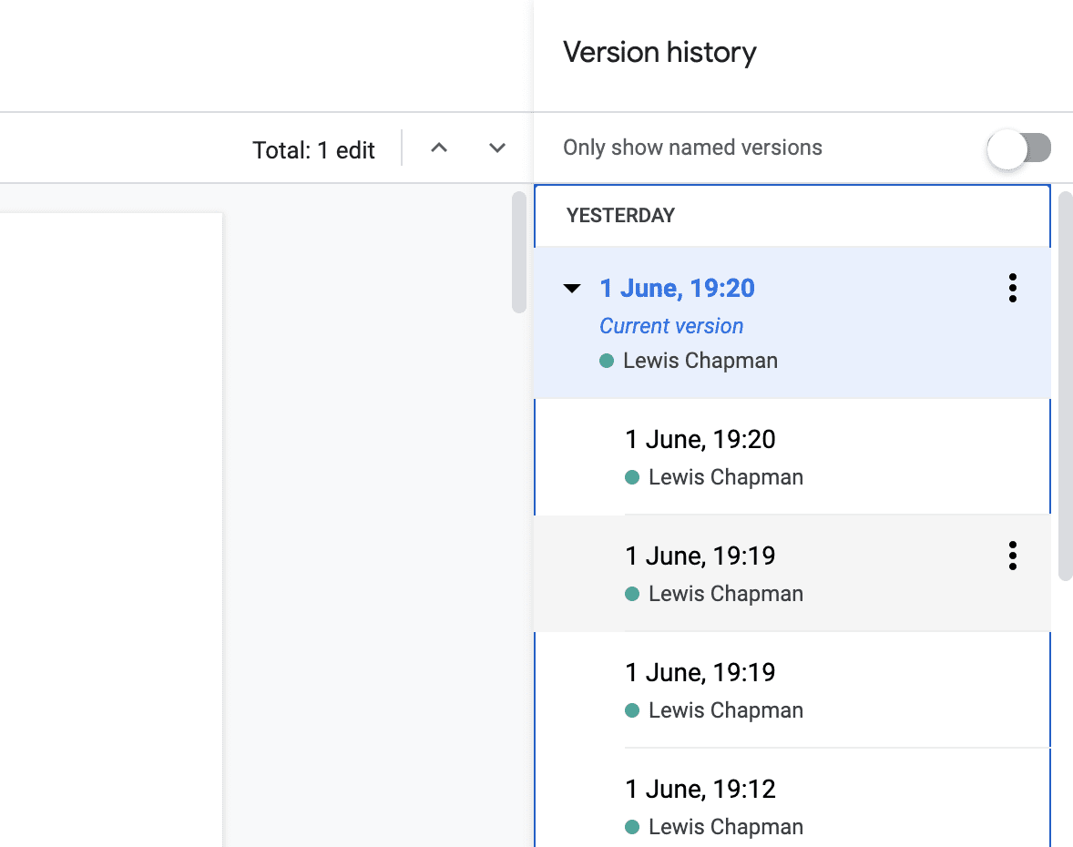 One of the best features of Google Work Suite is the real-time commenting and unlimited versions. Previous versions are kept indefinitely and they don’t count toward your storage. This makes it super easy to track changes made to a document or undo a mistake. Sharing documents with your coworkers or other individuals is also incredibly easy.