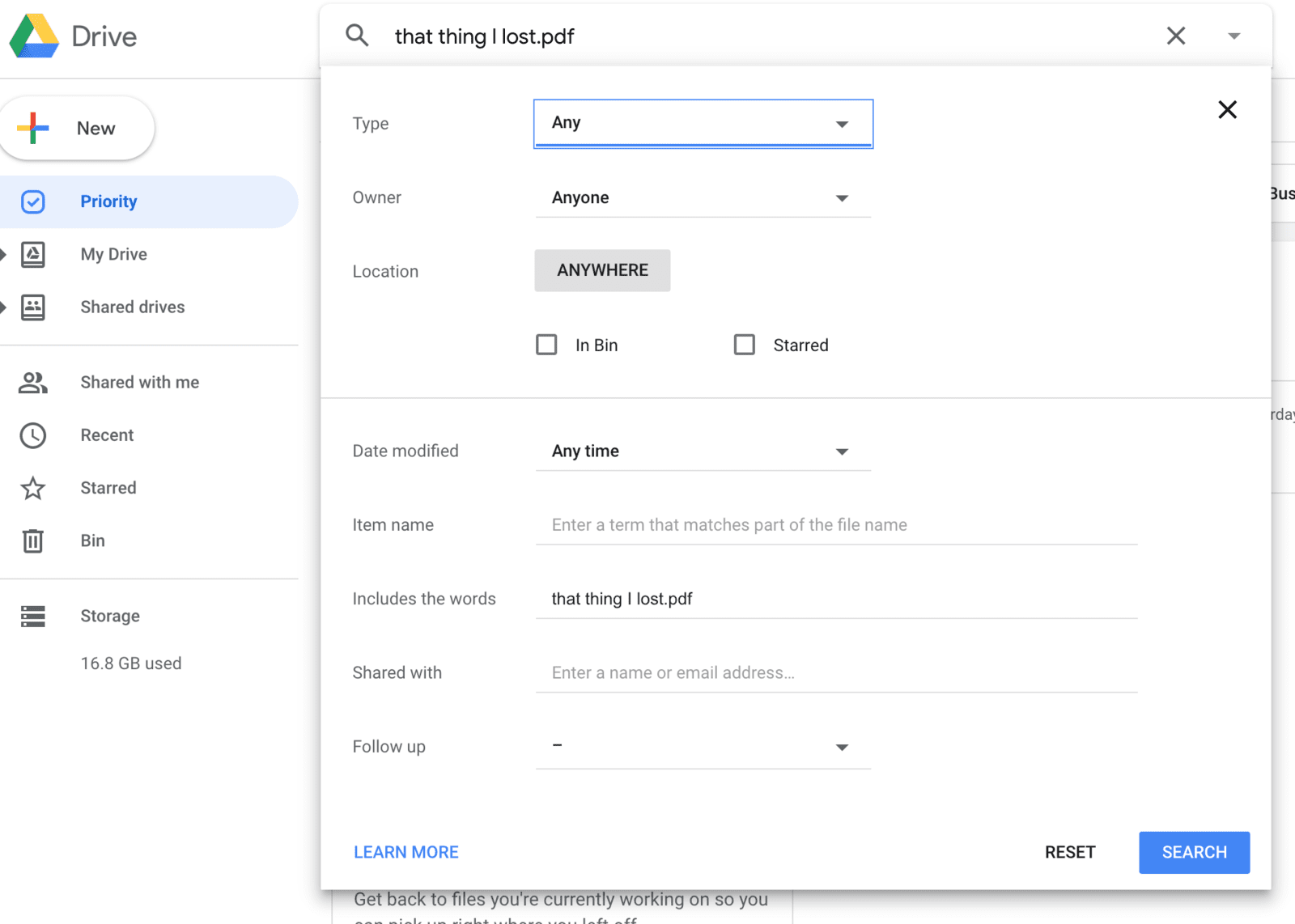 If you haven’t used Google Drive before, one of the best things I like about it is the amazing search functionality. I mean it does make sense - Google do know a thing or two about search technology. No more rummaging around deep in folders, you can easily find what you’re looking for, no matter how disorganised you are.