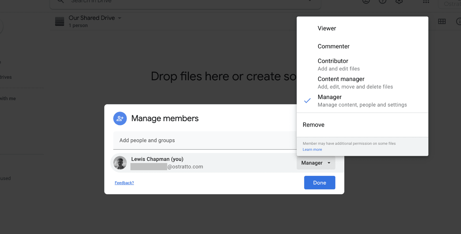 Shared Drives are also very neat. You can create shared drives for projects, departments or teams so that it's easier to find that shared information with sharing multiple folders with each other. It also means that the classic business situation of a user leaving the company and nobody being able to access their shared important files. You can choose certain levels of access for team members - view, edit or manager roles provide set permission levels.